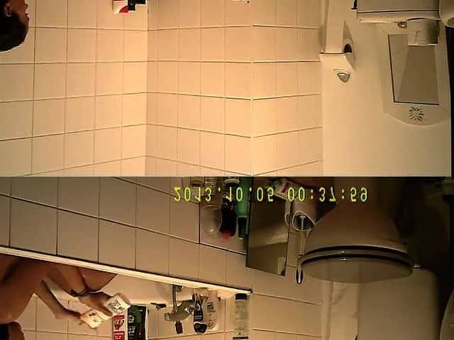 Brunette uses the toilet and takes a shower