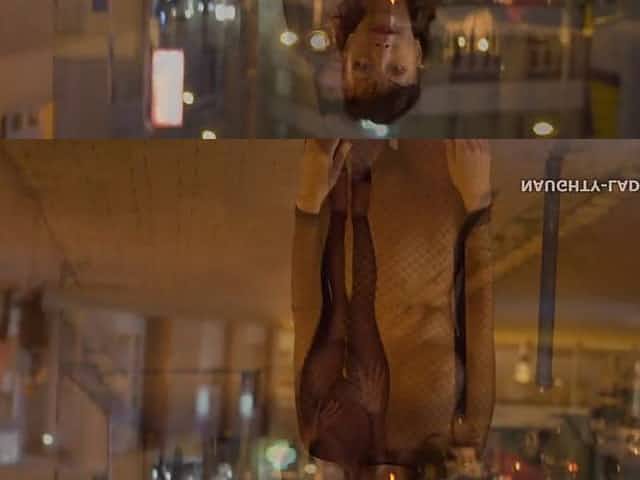 Mesh outfit in public at night