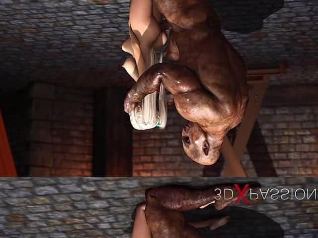 Sexy blonde gets fucked rough by a big monster in dungeon