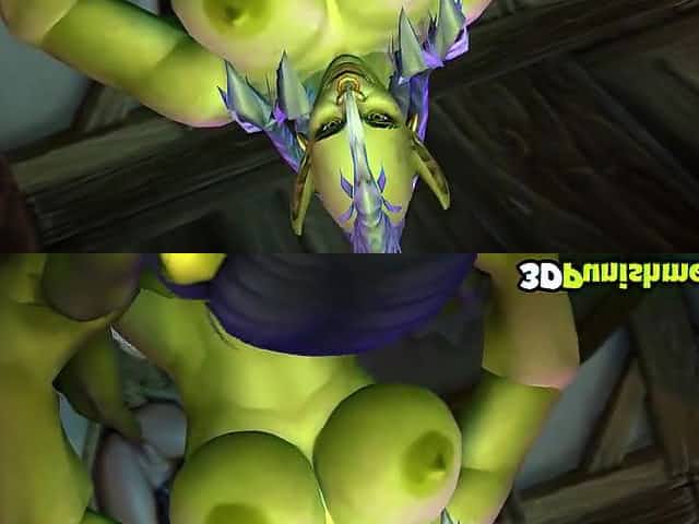 Green gnome with huge tits and big dick gets doggystyle sex from orc