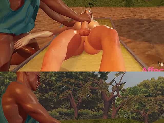 Big tits futanari babe fucking a black guy on a beach in a 3d animation