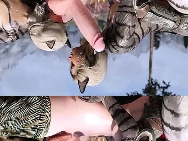 Two futanari elfs masturbate their big cocks