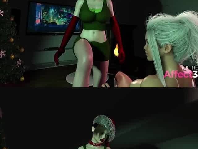 Futanari big tits babe fucking Santa's elf in 3d animatin by Pina Colada