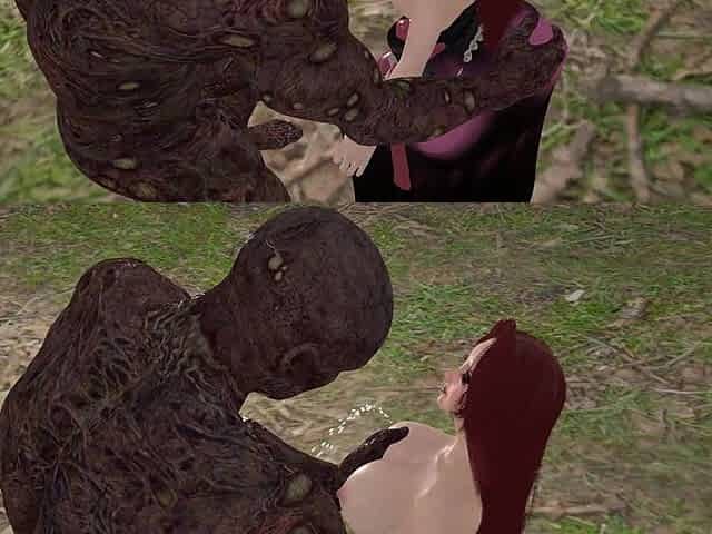 3D babe getting fucked by a monster in the woods