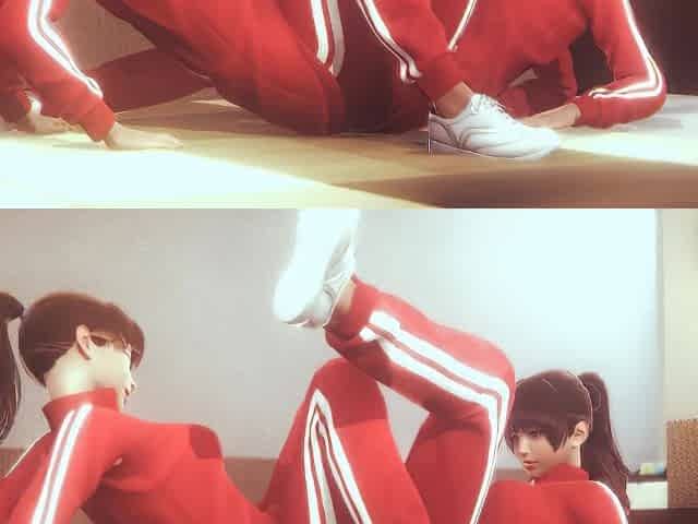 Asian Naughty Lesbian Tribbing with Red Clothed
