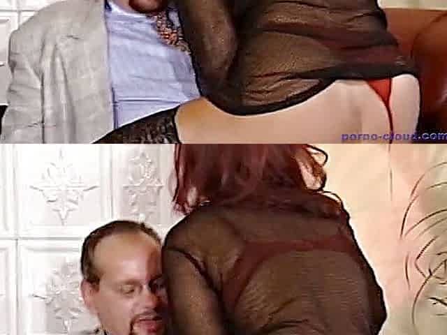 Horny milf with big tits and round ass fucked by two mature men