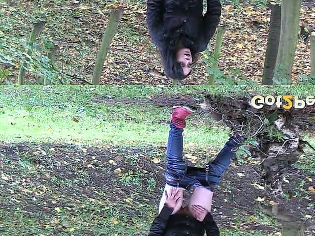 Filthy raven haired bitch goes wild about flashing out in woods