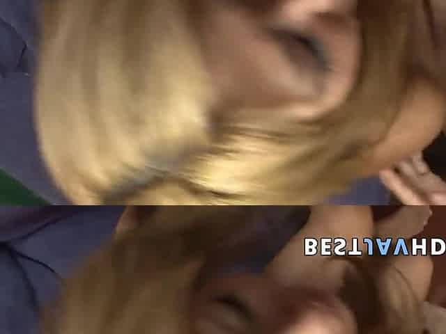 Juicy blond porn actress gets jizzed by two cocks