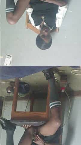 Black Teenager Play with Black Pussy in Her School Uniform on a Chair