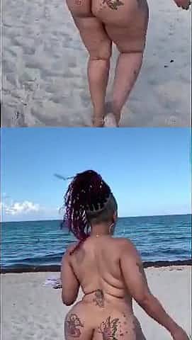 Large butt exposed beach walk
