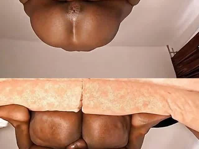 "Delicious ebony slut spread her legs apart to take it deeper in her ass"