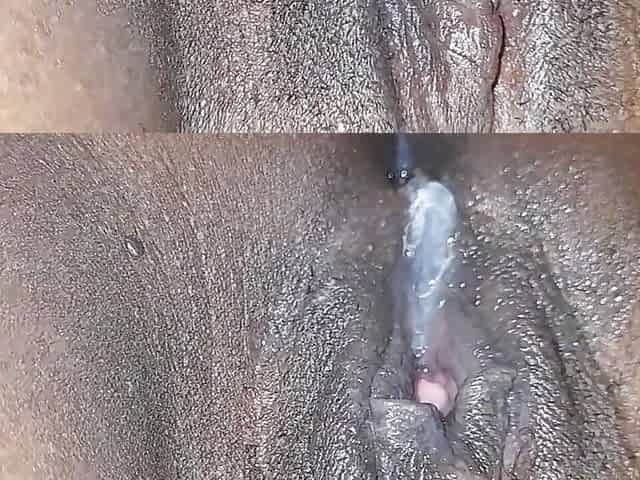 Messy ebony twat filled with white weenie and sexy semen