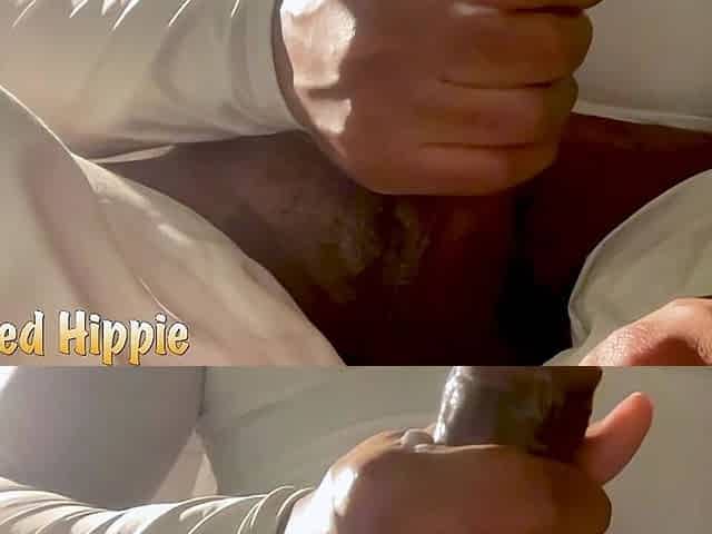 Lotioned Up BBC Moaning While Jerking Off and Big Cumshot & Big Black Cock Cumming Blacked Hippie