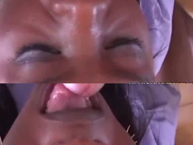 Ebony Interraciaal Cumshot