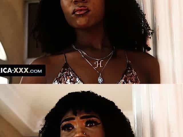 After sucking a punk hard knob, Afro playgirl who wishes to be a pornstar got drilled