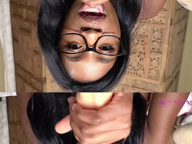 Afro pornstar Nicole Kitt caught her roommate masturbating and sucks his wang in POV