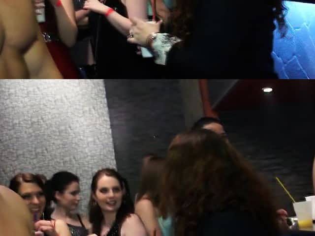 Three sexy brunette chick get fucked after a VIP party