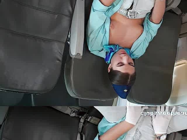 Airplane fuck scene showing a good-looking girl who needs hard dick