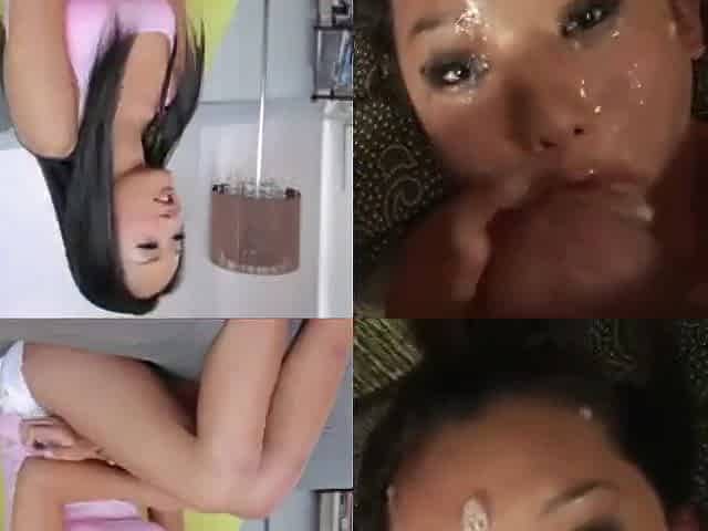 Stunning brunette receives cum in mouth after giving a blowjob - Alina Li