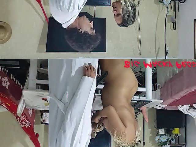 The beautiful blonde girl is fucking ass