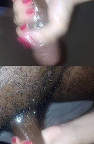 ROYALTY SQUIRTS ON HER KING LOYALTY LARGE CHOCOLATE COCK!!