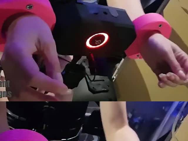 Hairy cunt hottie rides Sybian on hogtie