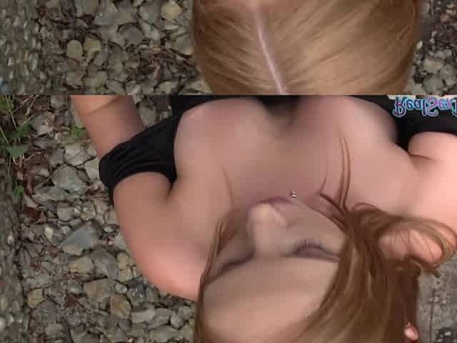 POV redhead babe outdoor fucked for cash after casting