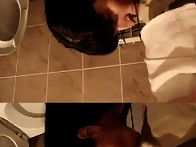 Wife swallow cum in the restaurant toilet.