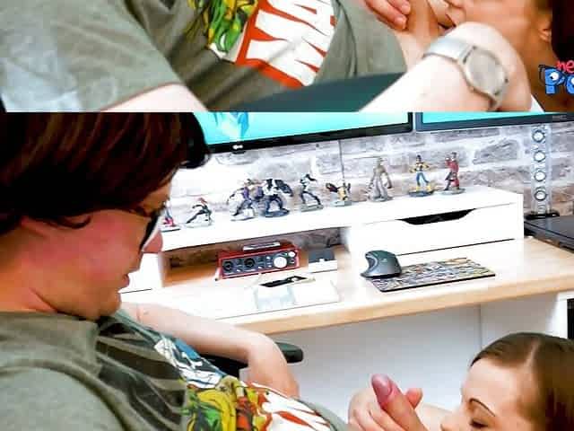 Hot face sitting and tight handjob for loving stepbrother
