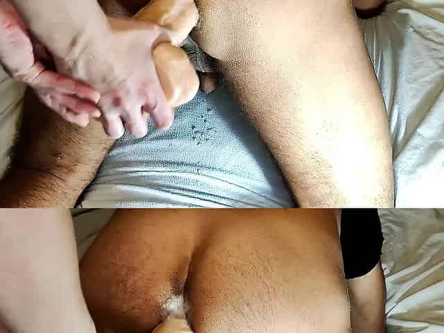 prostate massage with a huge dildo