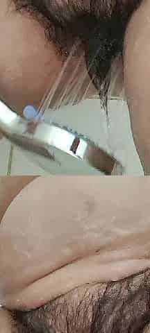 stepmom washing her chunky vagina getting water into her snatch