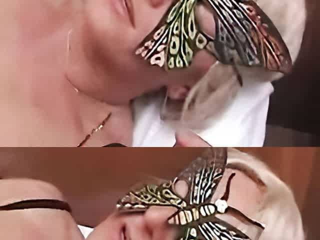 Brief haired doll is throating many rock rigid peckers in a row and getting spunk on face