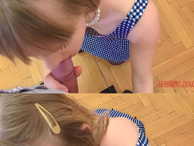 Very attractive and beautiful amateur blonde girlfriend sucking boyfriends dick