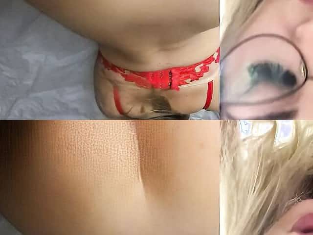 Blonde girl with glasses bends over for her first anal experience