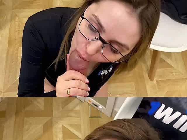 Pizza Delivery Man Fucked Juicy Beauty With Huge Dick In The Mouth And Pussy By The Window. Guy Cum in Mouth
