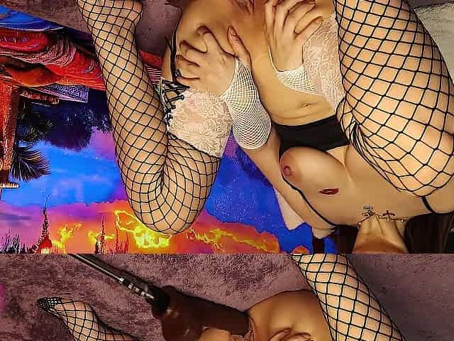 The nasty beauty in ebony fishnet was also slutty