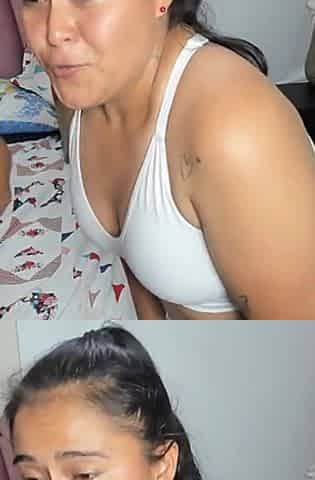 Two amateur big boobs teens threesome in public for money