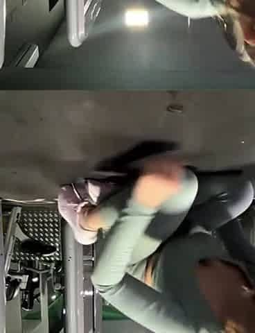 Excited hotty playing in gym