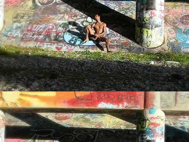 Sexy male take a risk in public