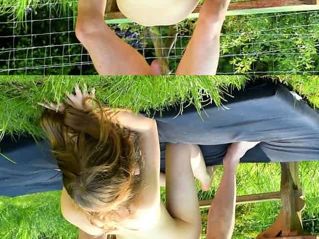 Little Bree masturbating outdoors in the garden