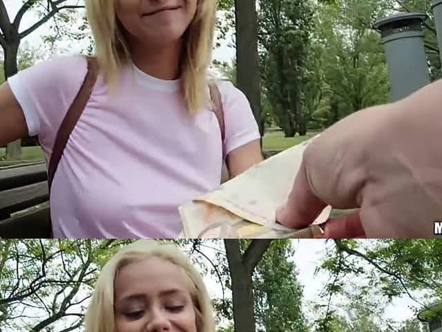 Stunning Italian blonde drilled outdoors in exchange for cash