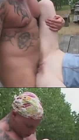 Pregnant Blonde Gets Covered in Cum Outdoors