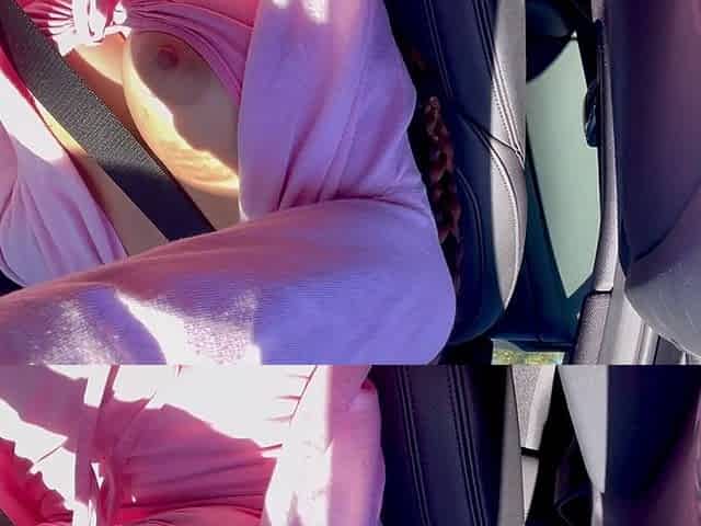 Sexy Car Ride with Artemisia Love Flashing Her Juicy Boobs and Big Hard Nipples While Driving