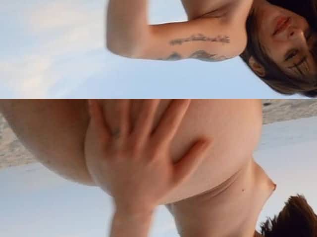 Skinny blonde bikini chick Sadie Hartz likes fingering herself outdoors