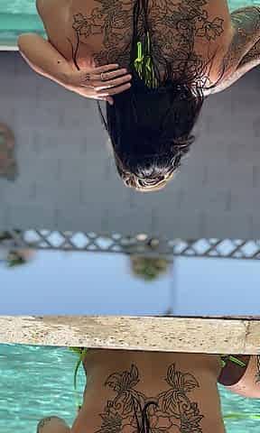 Hot lesbo makeout with back tattoo visible