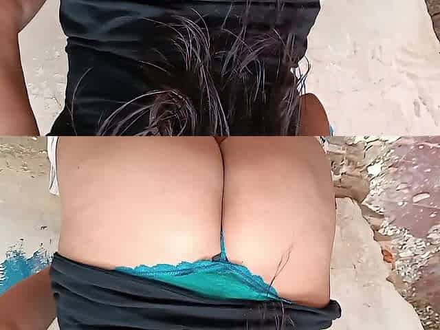 Real amateur outdoors in her lingerie