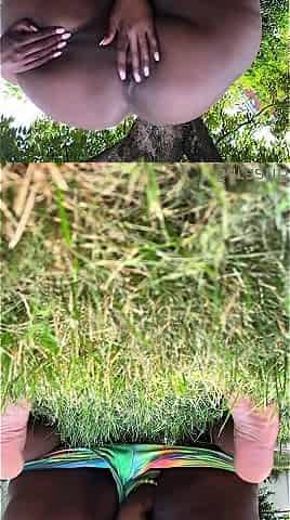 Sexyjayla254 black t-girl wanking large wang outside