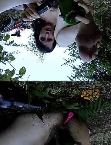 Lovely Amateur teen brunette masturbating outdoor