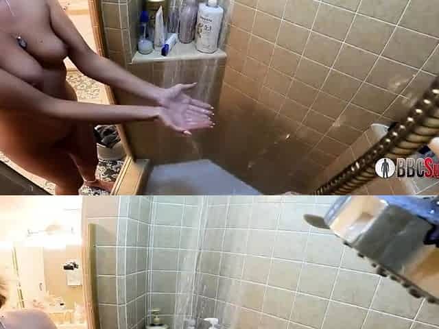 Two wet naked amateur babes having lesbian sex in the shower