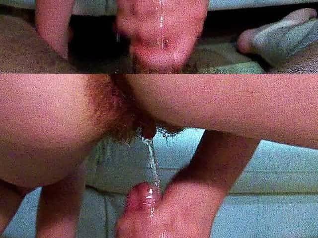 Kinky pair pissing in tandem in cunt and on penis